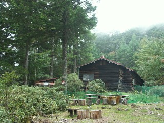 ![]() 十文字小屋 荷揚げの小屋番さんと下山中すれ違う |