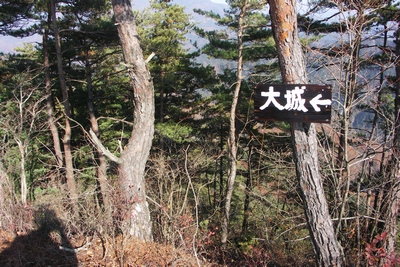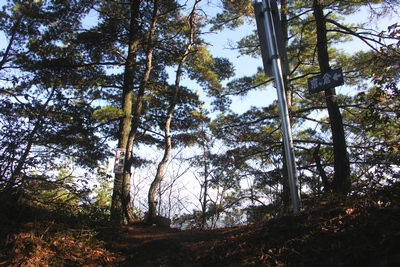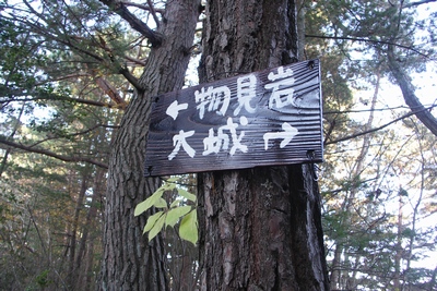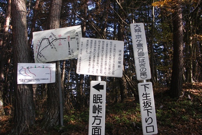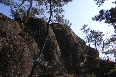 ![]() 大岩下を登る 看板には「稜線もうすぐ」とある |