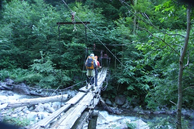 ![]() 北沢 -7:57 朽ちかけた吊橋を渡る |