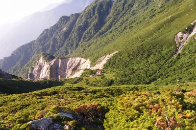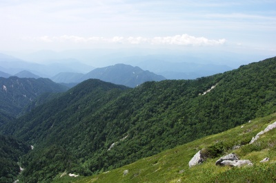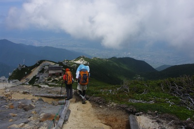 ![]() 駒峰ヒュッテへ 眼下には伊那谷が見える |
