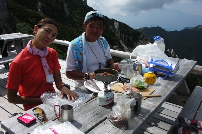 ![]() 越百小屋 -10:02 お湯を沸かしてラーメンで腹ごしらえ |