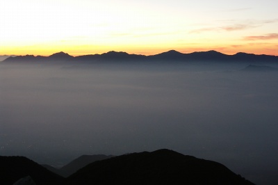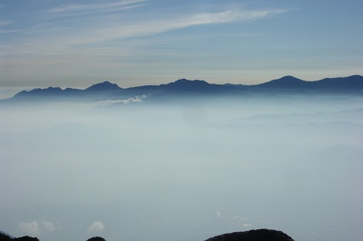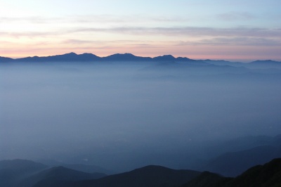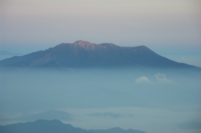 ![]() 御嶽山 木曽谷を隔てて朝日が当たる |