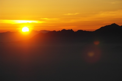 ![]() ご来光! -5:14 鋸岳左奥から昇る |