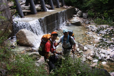 ![]() 沢に降り顔を洗い歯磨きしてサッパリ |