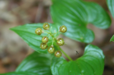 ![]() マイヅルソウの実 樹林帯両側に一面の群生 |