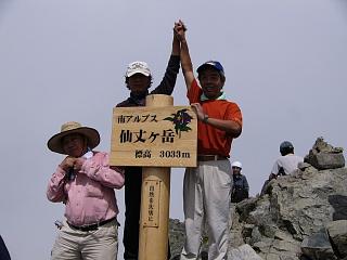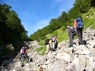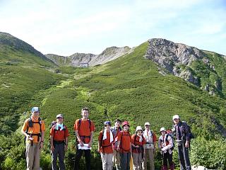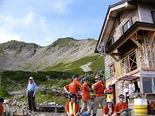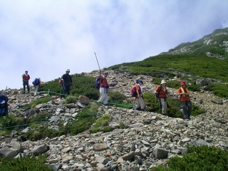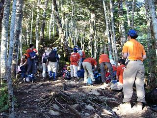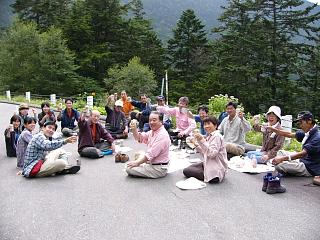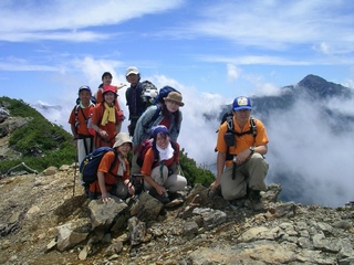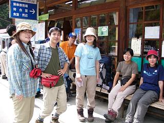 ![]() 仙流荘バス発着所 7/31 14:00 山行への期待で皆さん笑顔です |