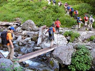 ![]() 丸木橋を渡る 以後はずっと左岸伝いに行く |