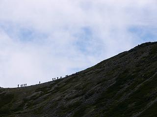 ![]() 山頂はもうじき 「苦しみの後に楽しみがある」との標識も ![]() 稜線を行く登山者 小仙丈コースから山頂を目指すパーティー ![]() 恒例の山頂写真 9:50 40回記念に特大の横断幕持参! ![]() ハイタッチ! K市さんと一年ぶりのポーズ♪ ![]() 富士山と北岳 雲の切れ間から一瞬の揃い踏み ![]() 3033mの凧揚げ 遊び心のある人もいるものだ。。 ![]() 下山開始 10:15 ルンルン気分の稜線漫歩♪ ![]() 北岳をバックに あくまでも楽しい山歩きを! ![]() ちょっとした岩場 此処を越えると小仙丈ケ岳 ![]() 小仙丈で昼食 11:15 最後の展望を楽しみながら。。 ![]() ここでも集合写真 皆さん名残惜しい気持で一杯 ![]() 間もなく樹林帯へ 遥か右下に仙水峠俯瞰 ![]() 原生林の急下降 そろそろ膝が笑い出す? ![]() 無事下山 14:50 北沢峠でバスを待つ ![]() さくらの湯にて 楽しい山行でした(^_^/ |
