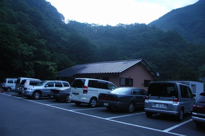 ![]() 便ヶ島の朝 20台以上は置ける立派な駐車場 |