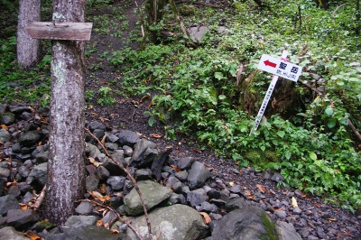 ![]() 登山道入口 -5:57 此処から本格的な登りが始まる |