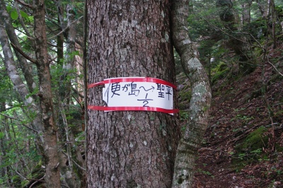 ![]() 食害 シラビソの樹皮をシカが剥ぐ? |