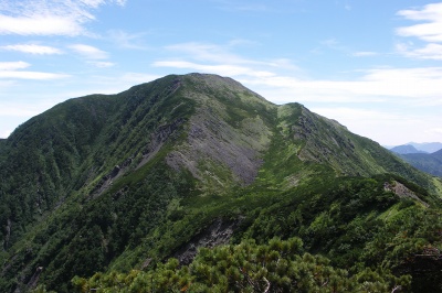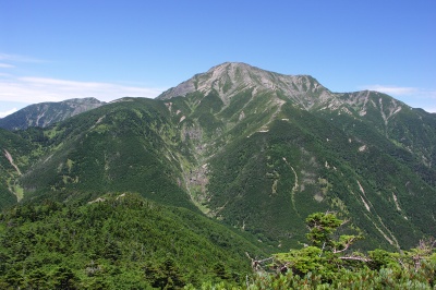 ![]() 聖岳全容 大きなスケールで背後に展開 |