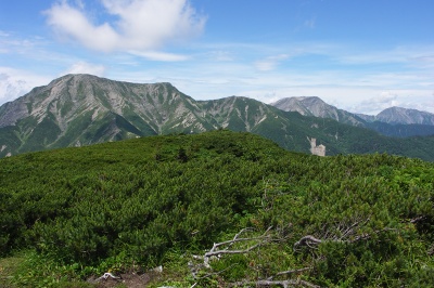 ![]() 南岳から上河内岳 この先も高山植物の競演が・・ |