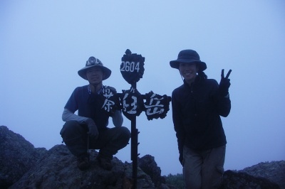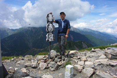 ![]() 上河内岳山頂 -13:20 撮影をお願いした縁で若い夫妻と同行 |