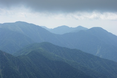 ![]() 明日歩く稜線 左端が茶臼岳、右から二つ目が光岳 |