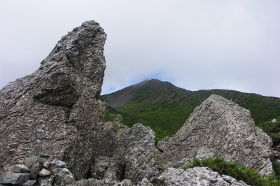 ![]() 池口岳遠望 光と加古森の間に双耳峰を見せる |