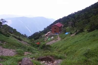 ![]() 茶臼小屋 10時間の行程が漸く終わる |