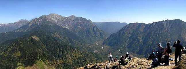![]() 山頂からの槍・穂高・上高地パノラマ (2002.10.13 撮影) |