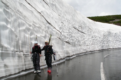 ![]() 車道道歩き 暖かく正にサマースキー感覚 |