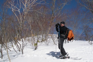 ![]() 稜線到達 -10:22 ストックの先が佐渡山ピーク |
